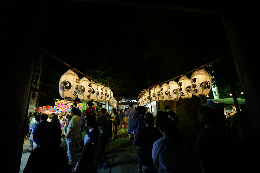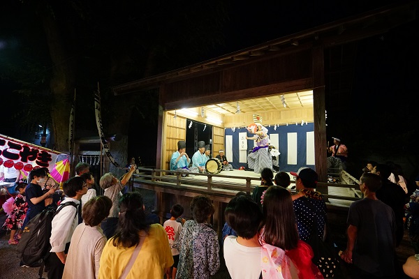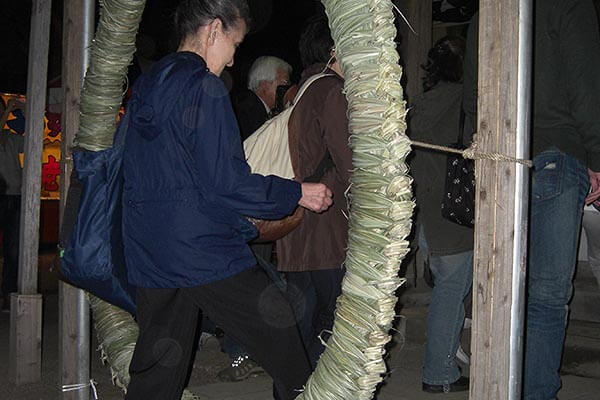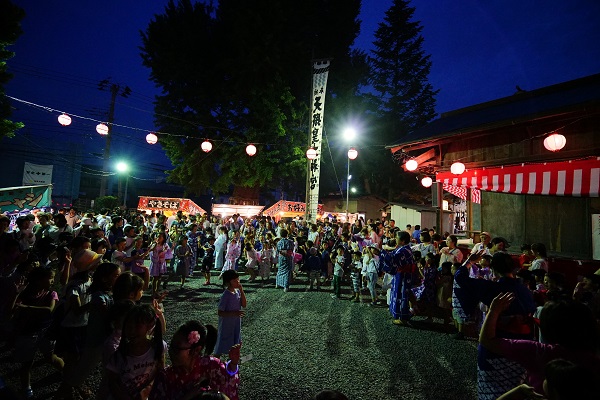 The Shinmei-gu Shrine is known as one of the three shrines of the Hachinohe Sansha Taisai (Three Shrine Festival). Every year on July 1, the shrine hosts the Chinowa Festival. During this festival, a large ring made of straw is set up on the grounds. Long lines of people come to pray for good health and to drive away evil spirits by passing through this ring, which is said to bring good luck. The night before the festival, on June 30, rows of amusement stalls and food booths are set up and performances of Bon dances, sacred Shinto dances, and music are performed.