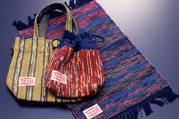 Nanbu sakiori style of weaving uses torn strips of old cloth and well-worn kimonos as the weft, with the warp composed of four colors of hemp or cotton yarn.