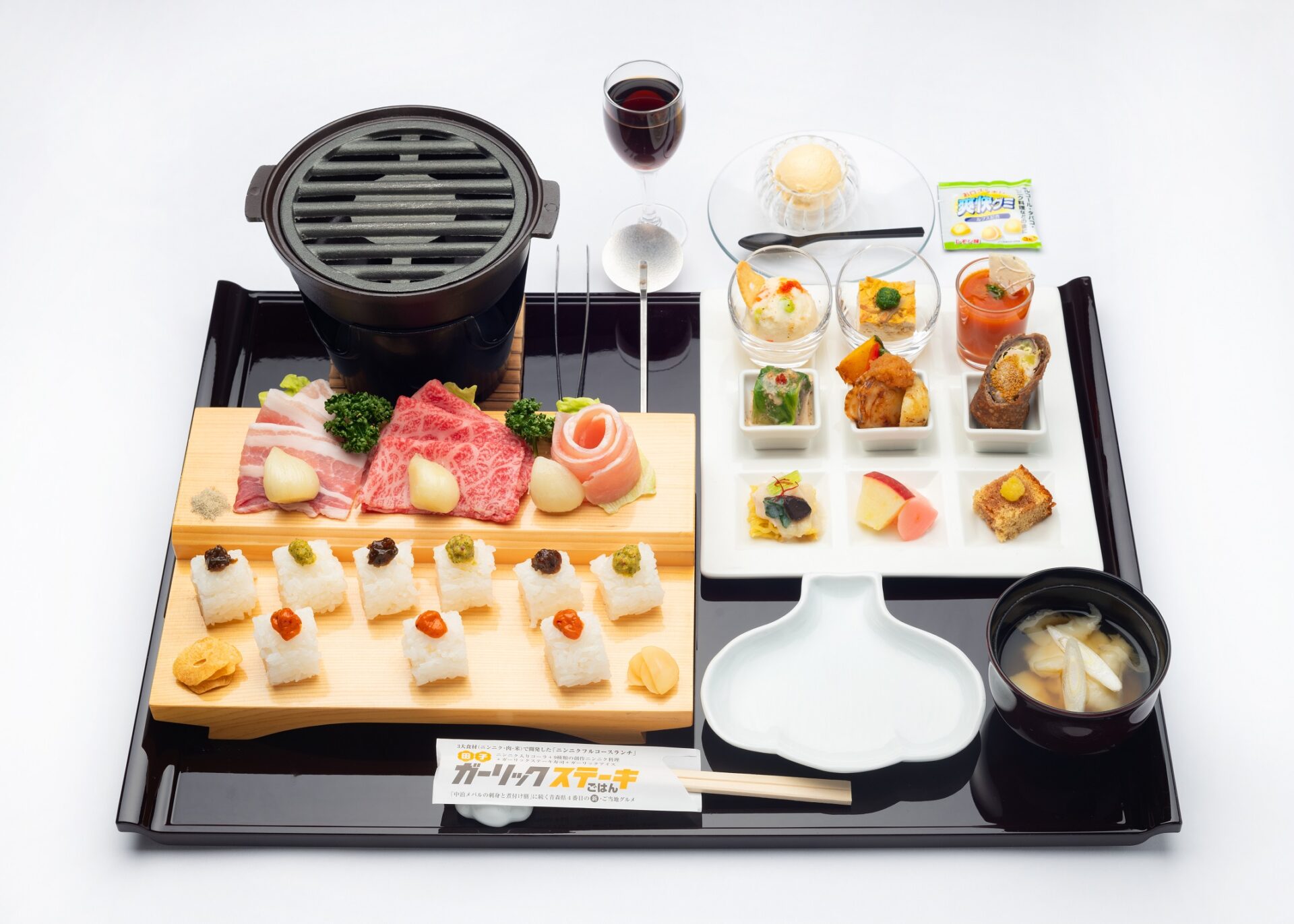 日本有数のにんにく産地・田子町の新・ご当地グルメとして注目を浴びている「田子ガーリックステーキごはん(略称:ガリステごはん)。自慢の特産品「たっこにんにく+肉+米」、この3食材を掛け合わせ作られる、なんとも贅沢な「ニンニクフルコースランチ」がその正体です。①ウエルカムドリンク「にんにく入りコーラ」②前菜「9種類のにんにく創作料理」③メイン「ガーリックステーキ寿司と味噌汁」④デザート「ガーリックアイス」のコース仕立てとなっています。