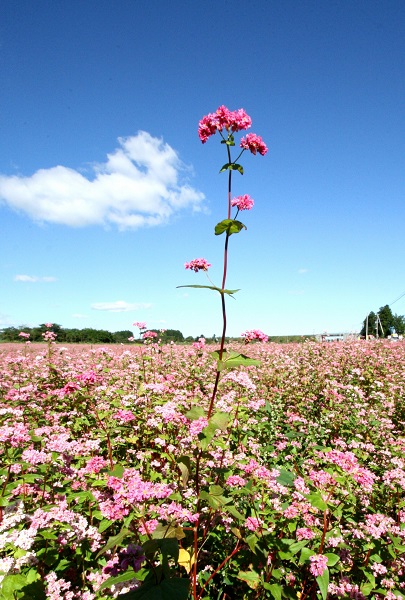 秋にはマスカット色の葡萄棚、赤そばの花畑が見頃となり、その美しい景観も楽しむことができます。