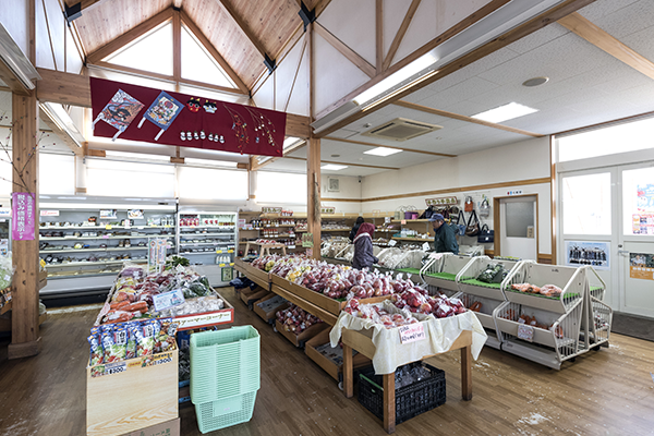 「ふれあい市ごのへ」は平成12年(2000)にオープンした産地直売施設です。地域の農家や商店などの会員60名が、地域に根差した産直づくりに取り組んでいます。採れたての農産物販売コーナーや地元の名産品・手づくり作品コーナーなど、地元の方々が丹精込めて作ったものを取り揃えており、イチ押しの貴重な紅玉を使った「アップルパイ」は、酸味のバランスが絶妙です。ドライブや山菜採りのついでに立ち寄る人も多く、人気商品は午前中で売り切れるときもありますので、早めの購入をおすすめします。なお、毎月第3日曜日のサービスデーでは、数量限定で農産物を特価で販売しています。