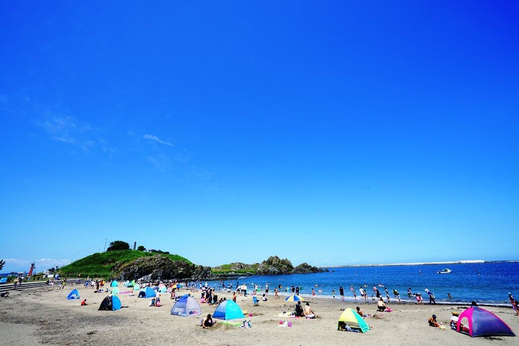 ウミネコの繁殖地として国の天然記念物に指定されている「蕪島」の隣にある海水浴場。市街地から近い場所にあり、期間中は多くの海水浴客でにぎわいます。小さなビーチではありますが、ウミネコの鳴き声を聞きながら海水浴ができる個性的な海水浴場です。