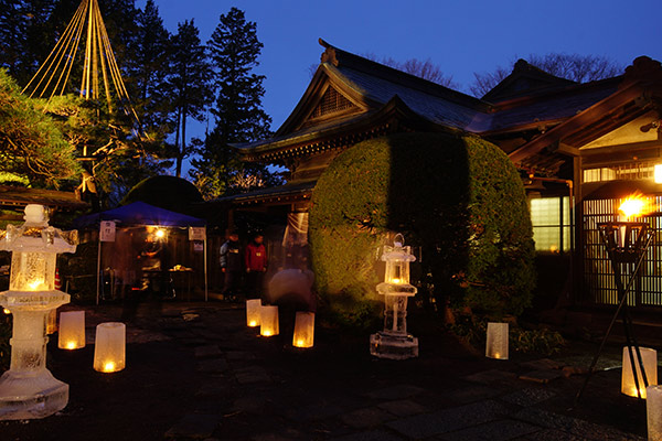 ここを会場に毎年2月の八戸えんぶり期間中に開催される「お庭えんぶり」は、八戸せんべい汁と甘酒で体を暖めながら旦那様気分でえんぶりを鑑賞することができ、毎年人気となっています。