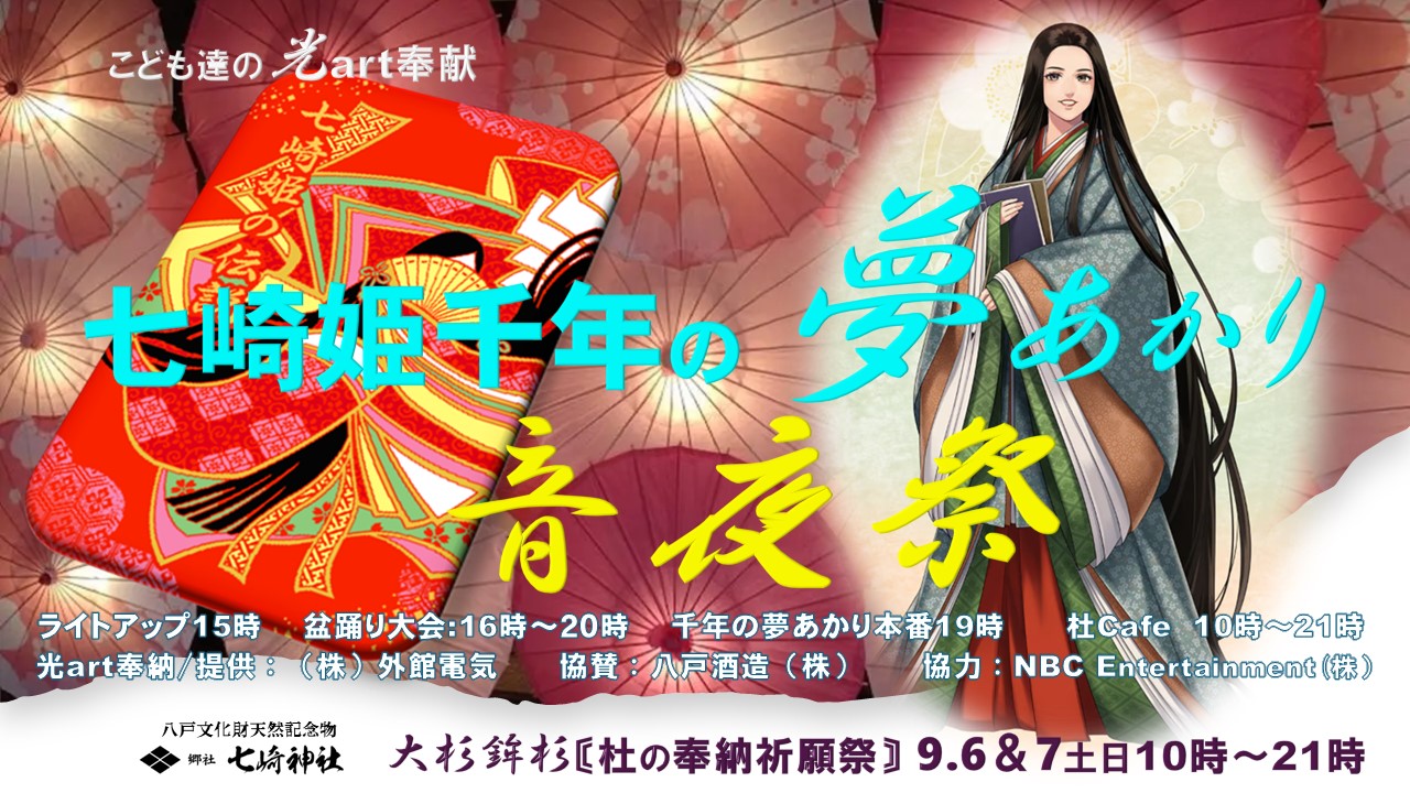 もともとは「七崎聖観音菩薩御本尊」を祀る七崎観音本堂が、現在の拝殿の位置に建っていました。七崎観音は「糠部三十三観音の第十五番札所」として広く信仰を集め、名高い古刹で南部藩の崇敬も厚く、八太郎浜への「神輿の旅」は、群衆三千余人もの人出であったと古書に記されています。