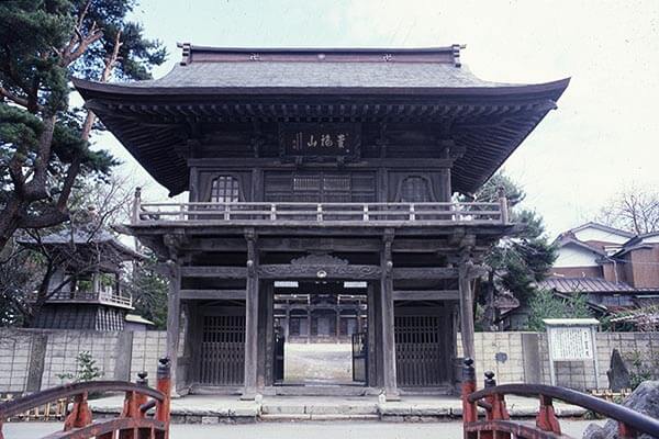 根城南部氏の一族、新井田氏のゆかりの寺として江戸時代に造られた曹洞宗の寺院。山門は文化8年(1811)以前に建立されたといわれ、山門前にある餓死萬霊等供養塔(がしばんれいとうくようとう)と戒壇石が天明の大飢饉の様子を今に伝えています。