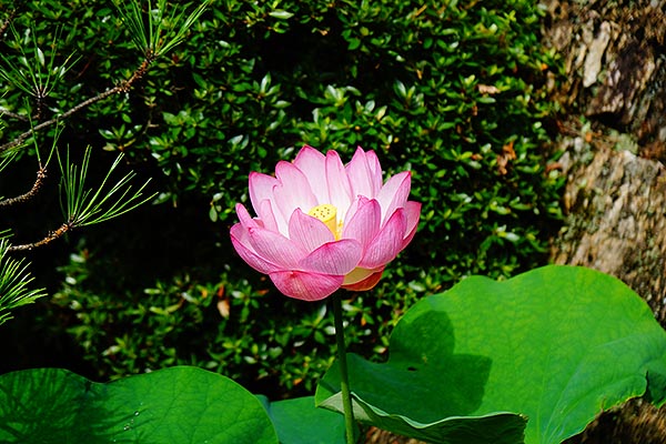 院内の池では、毎年8月末頃になると、古代のハスである大賀ハスが咲き、訪れる人びとの目を楽しませています。