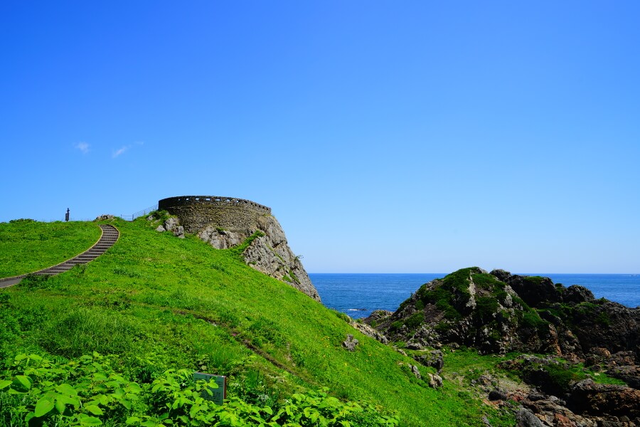 趣ある外観の葦毛崎展望台は、種差海岸遊歩道の基点でもあります。
