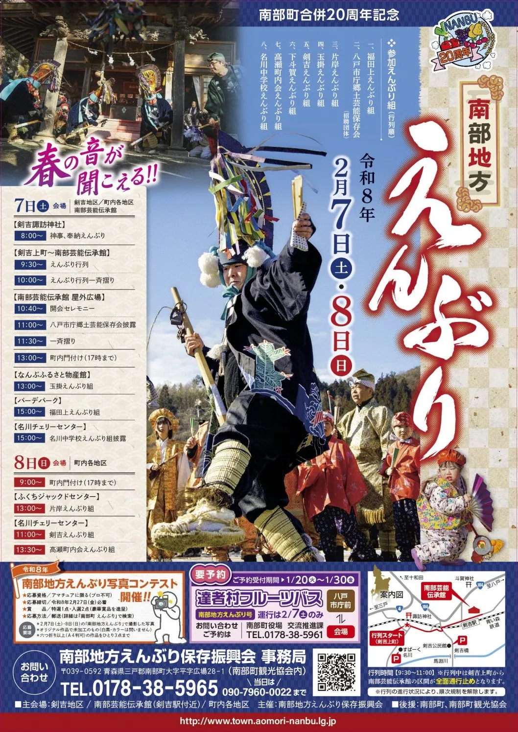 青森県八戸市の伝統の冬まつり「八戸えんぶり」の令和8(2026)年行事日程や出演組情報などをご紹介します。