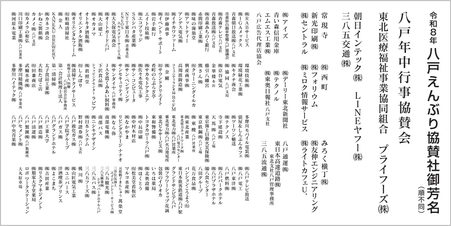 令和8年八戸えんぶり協賛社御芳名(順不同)