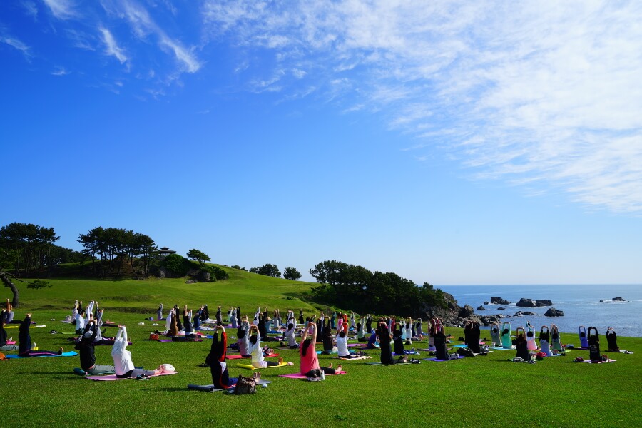 芝生地では5~9月の毎週土曜日早朝に「種差朝ヨガ」が行われます。波音を聞きながら、広大な芝生に身をゆだねれば、これ以上ないリラックス効果が得られます。