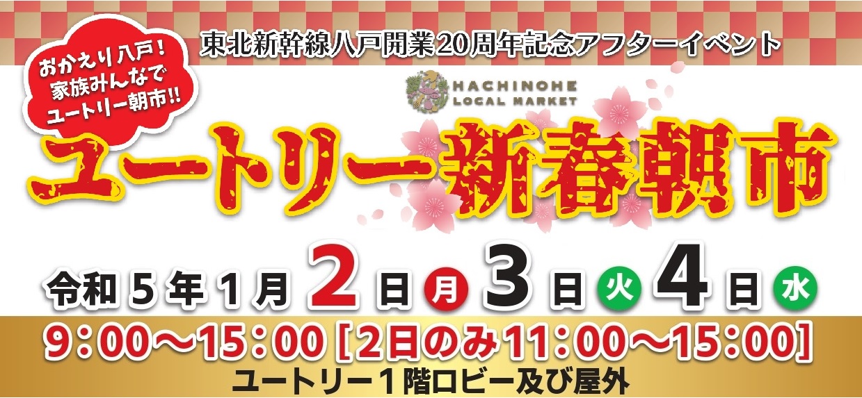 館鼻岸壁朝市の名物「しおてば」の大安食堂をはじめ、人気店が多数出店!ユートリーで朝市気分が味わえます♪帰省した家族や友達と、おかえり八戸!みんなでユートリー朝市に行こう!